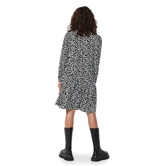 Black Viscose Cut Out A-line Long Sleeves Mini Dress