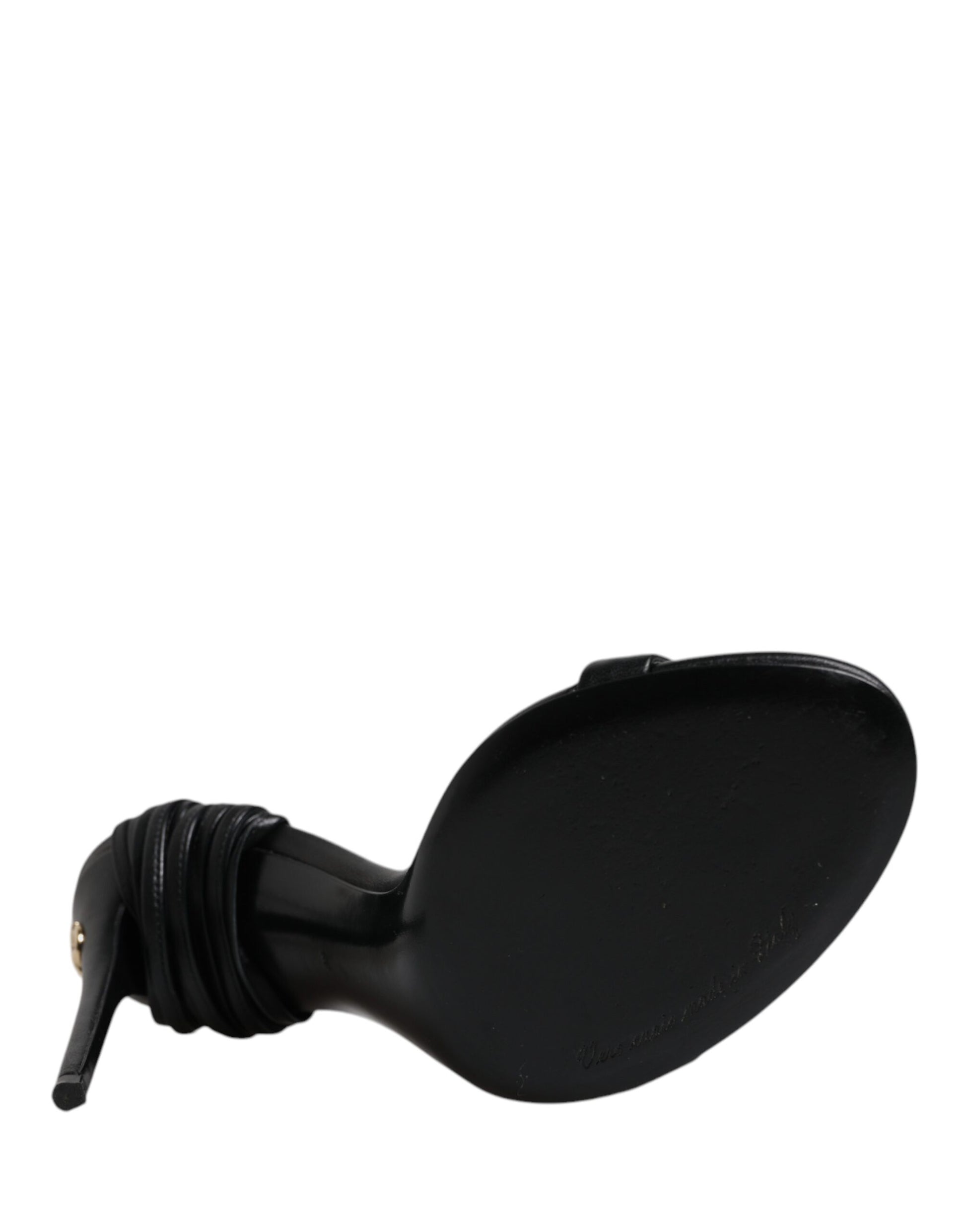 sandals are crafted from smooth black leather and set on sleek stiletto heels. Designed with a refined silhouette, they embody Dolce & Gabbana’s signature blend of sophistication and femininity.
