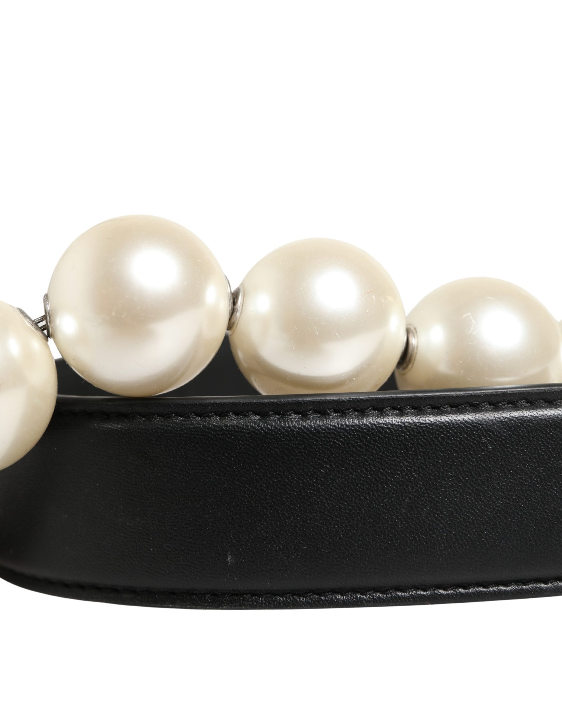 Gorgeous brand new, 100% Authentic Dolce & Gabbana shoulder strap. Crafted in Italy, this piece combines black leather, silver-tone chain links, and oversized pearl accents, complete with the iconic DG logo charm. A luxurious accessory to elevate any bag.